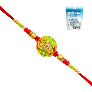- 1 Rakhi - Green Round Pendant Rakhi Witth Chocolates