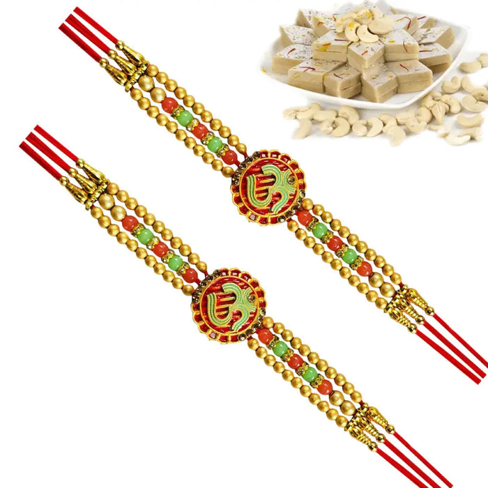 2 Rakhi - Colorful OM Rakhi With Indian Sweets