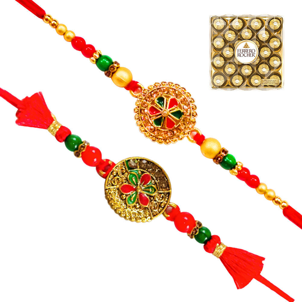 2 Rakhi - Designer Red Coloured Rakhi With Chocolates