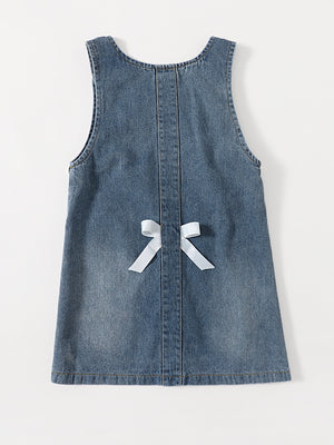 Toddler Girls Double Pocket Bow Back Denim Dress